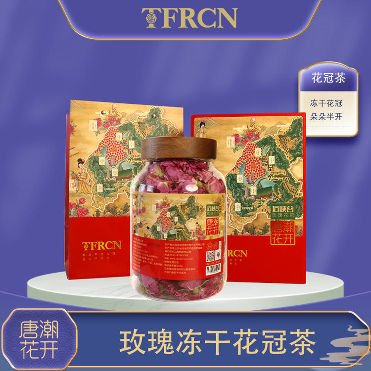 唐潮花開(kāi)平陰玫瑰花冠茶瓶裝凍干沖泡花...