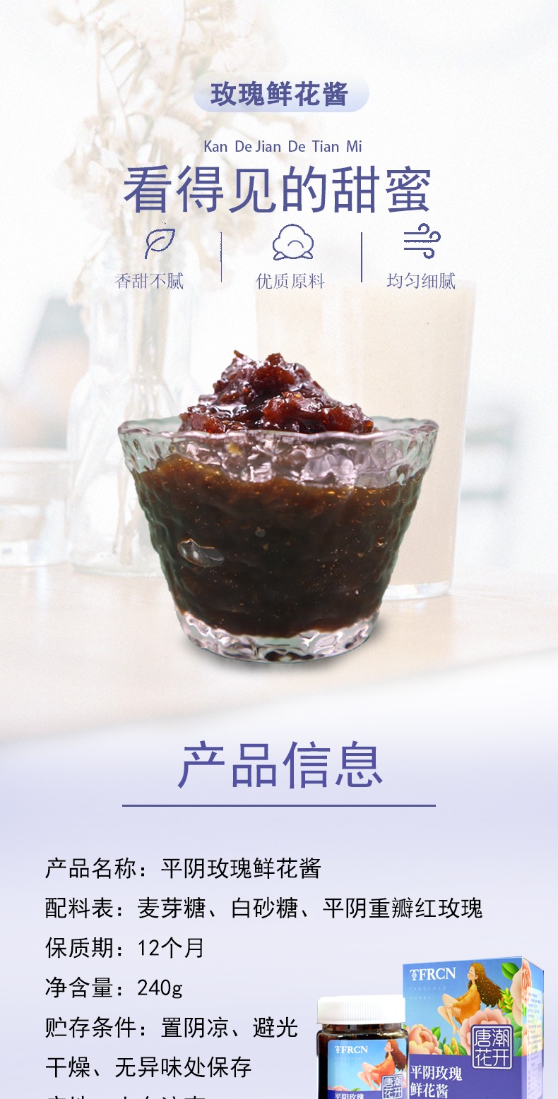 唐潮花開 平陰玫瑰 入口醇香均勻細(xì)膩 玫瑰鮮花醬