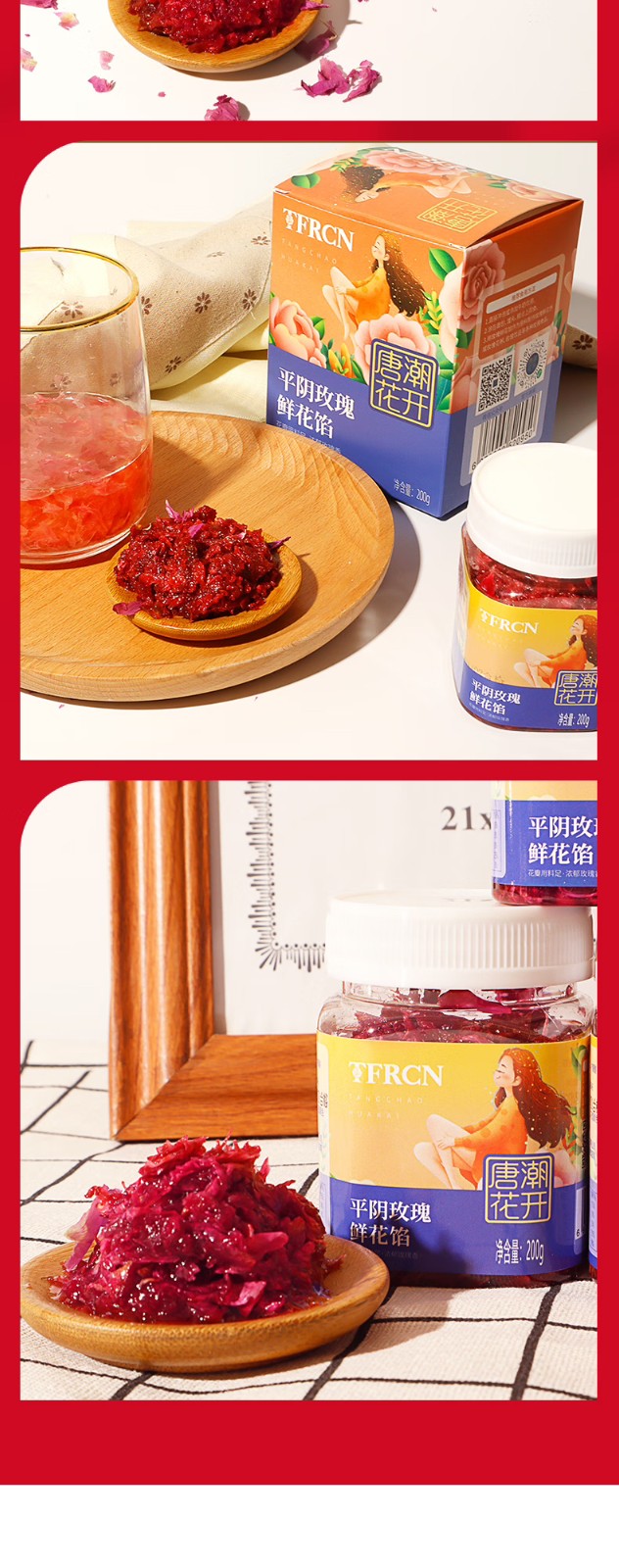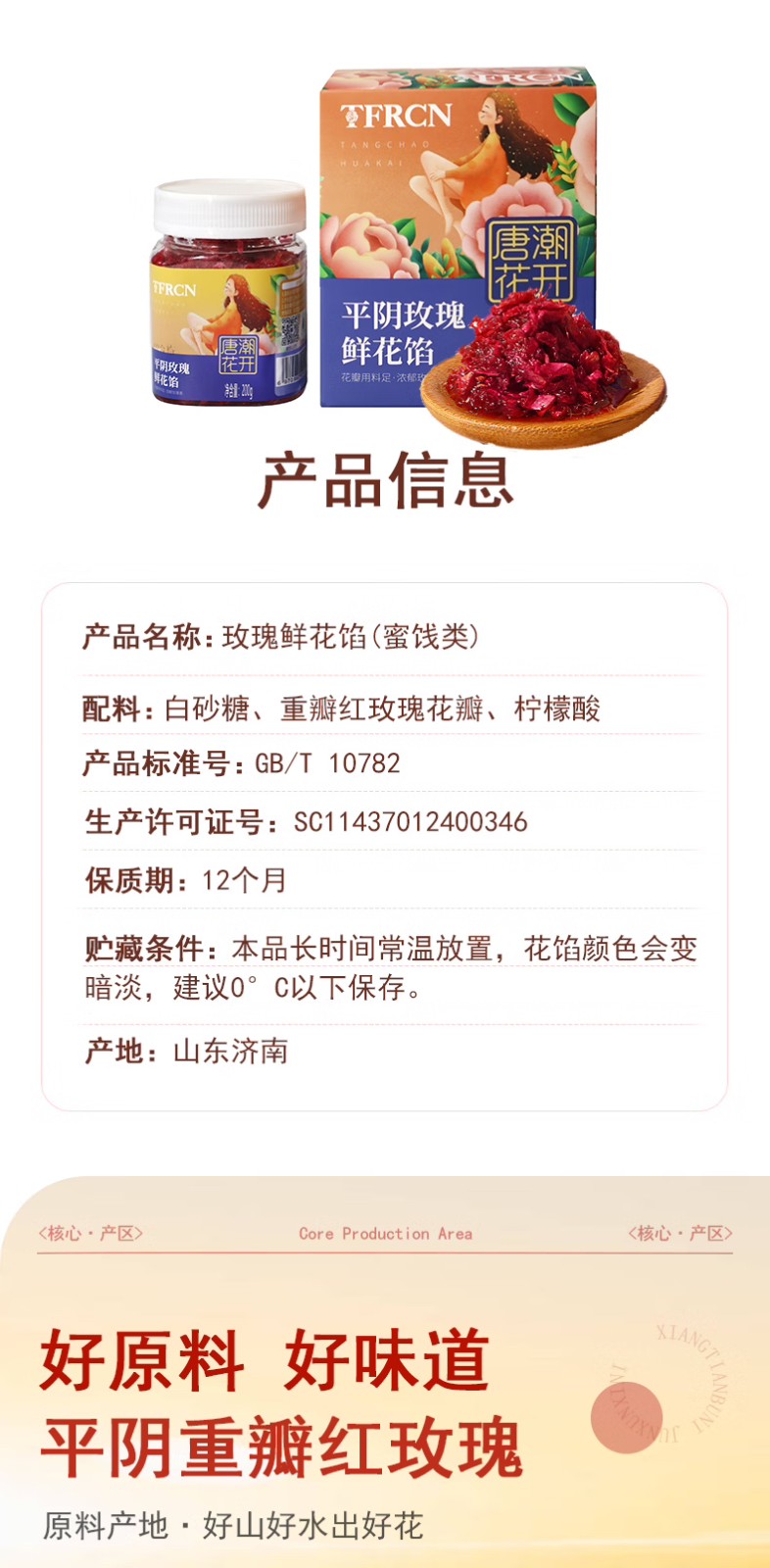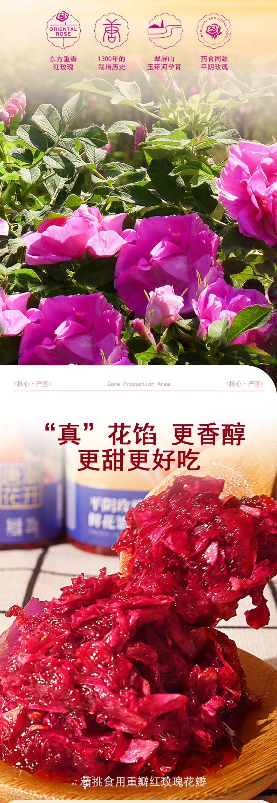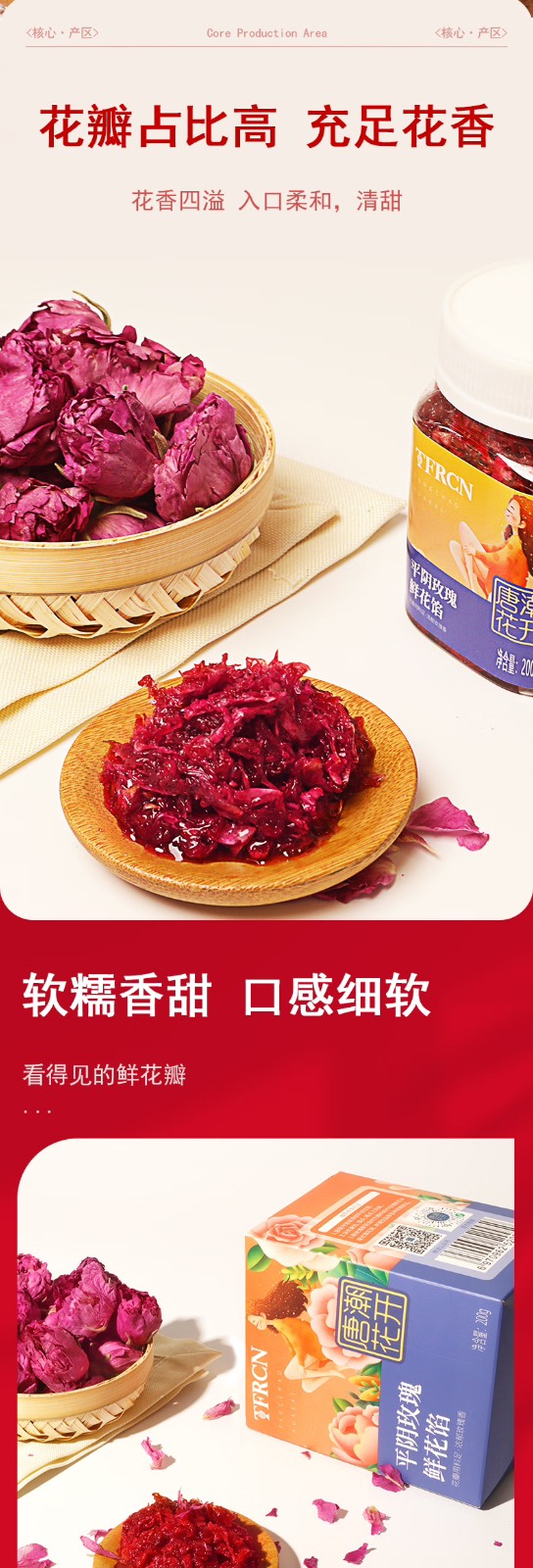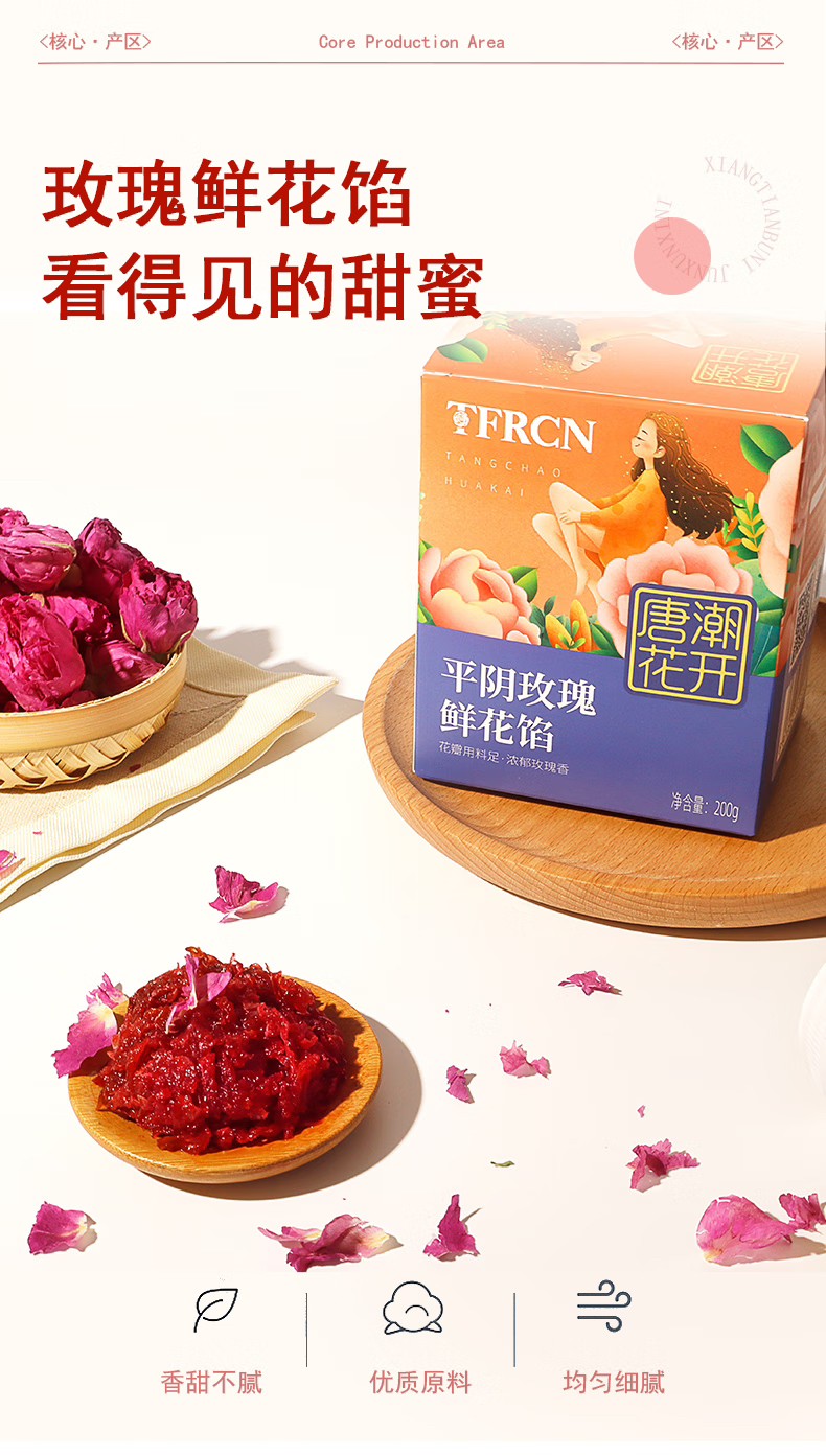 唐潮花開食用玫瑰鮮花餡山東平陰特產醇香細膩200g